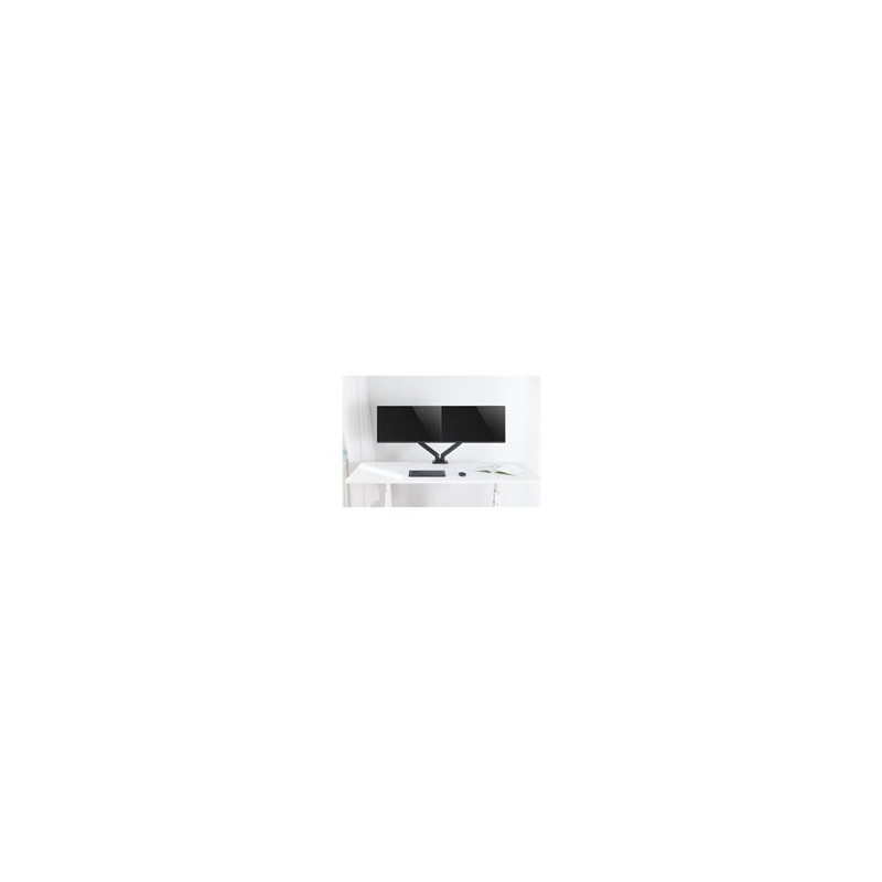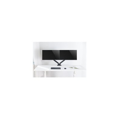 Double bras écran avec articulation complète et ajustement 360°. Le double bras articulé pour écran est la solution optimale pour l'installation de vos deux écrans. Il permet d'ajuster en permanence la position de vos moniteurs en hauteur en profondeur et en largeur. Profitez d'une liberté totale de placement travaillez débout assis ou tournez vos écrans pour présenter du contenu à un collègue. Tout est possible. Le double bras vous permet de positionner vos 2 écrans en toute liberté et d'améliorer votre confort de travail. Son ressort à gaz permet d'adapter la position et de contrebalancer le poids de l'écran avec précision. Guide câble intégré au corps du bras pour faciliter le rangement du bureau et dégager l'espace. Deux options de montage intégré : vis de serrage et kit de perçage. Garantie: 12.0 mois.